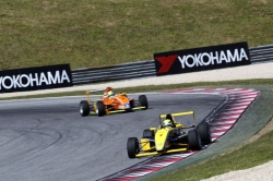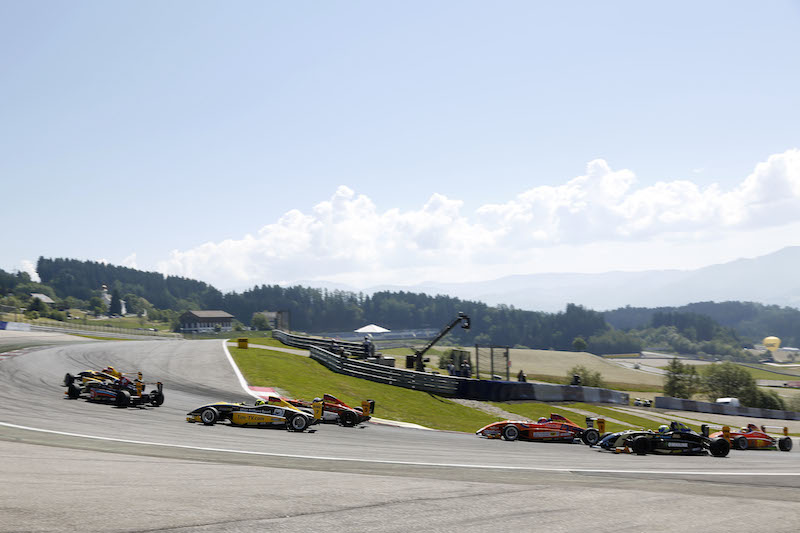 Zimmermann hatte sich für den Red Bull Ring einiges vorgenommen, nicht zuletzt für seine rund 60 Fans und Unterstützer, die vom Bodensee in die Steiermark gereist waren. Und begonnen hatte dieses Vorhaben perfekt. Zimmermann raste im Qualifying auf Startplatz zwei und erreichte damit das bislang beste Ergebnis seiner noch jungen Formelkarriere. Die Zuversicht für die Rennen war groß. Dann zeigte sich am Samstagnachmittag allerdings die Highspeedschule des deutschen Motorsports von ihrer unangenehmen Seite. „Nach ein paar Metern wurde ich von hinten angeschoben und spürte gleich, dass etwas passiert war“, erinnert sich Zimmermann. „Bei der Berührung habe ich mir meinen Reifen aufgeschlitzt und konnte das Auto nicht mehr kontrollieren.“
